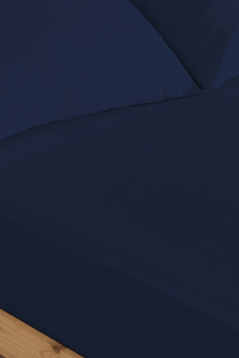 Lençol-capa em percal de algodão 200 fios/cm² Lisa - Azul-marinho