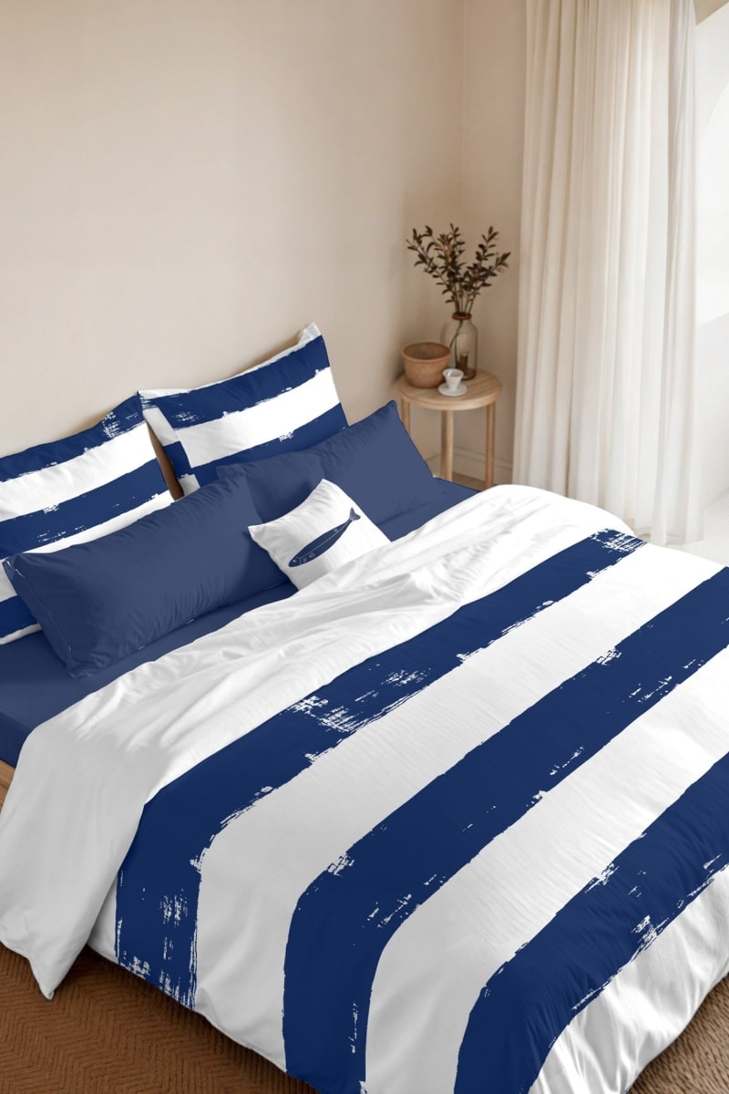 Capa de edredão reversível em percal de algodão 79 fios/cm² Cambrils- Azul-cobalto e branco