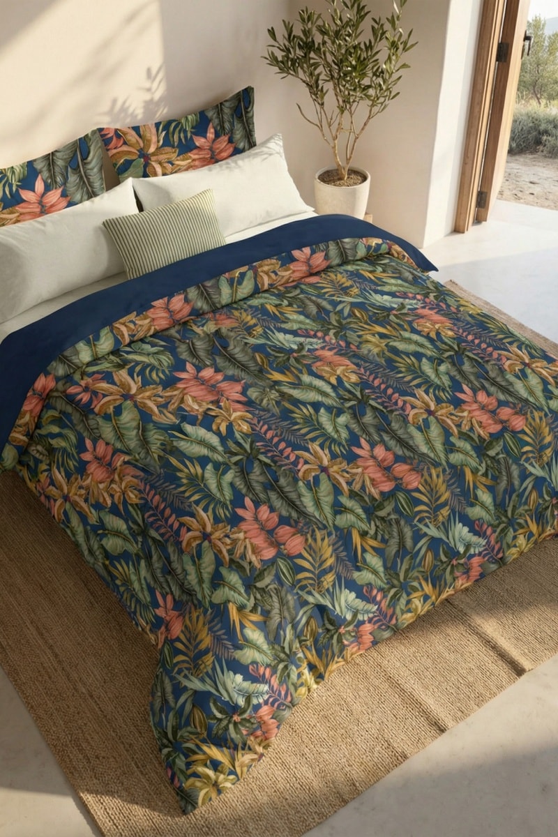 Capa de edredão reversível em percal de algodão 79 fios/cm² Loriguilla - Azul-marinho