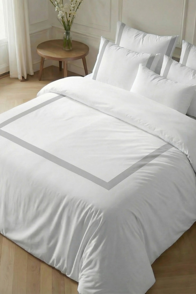 Capa de edredão reversível em percal de algodão 79 fios/cm² Portitxol - Cinzento-claro