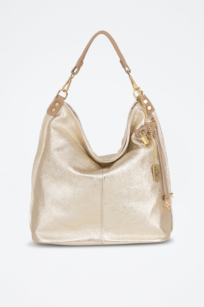 Mala de ombro em couro Greta - Dourado - Dourado