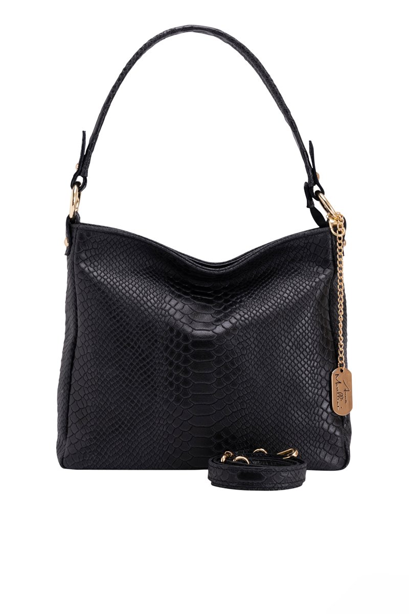 Mala de ombro em couro Dania - Preto - Anna Morellini - Preto e dourado