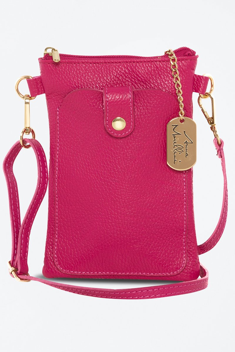 Mala a tiracolo em couro Erica - Fúcsia - Rosa