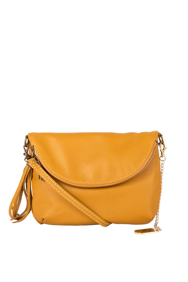 Mala a tiracolo em couro Alice - Mostarda - Amarelo