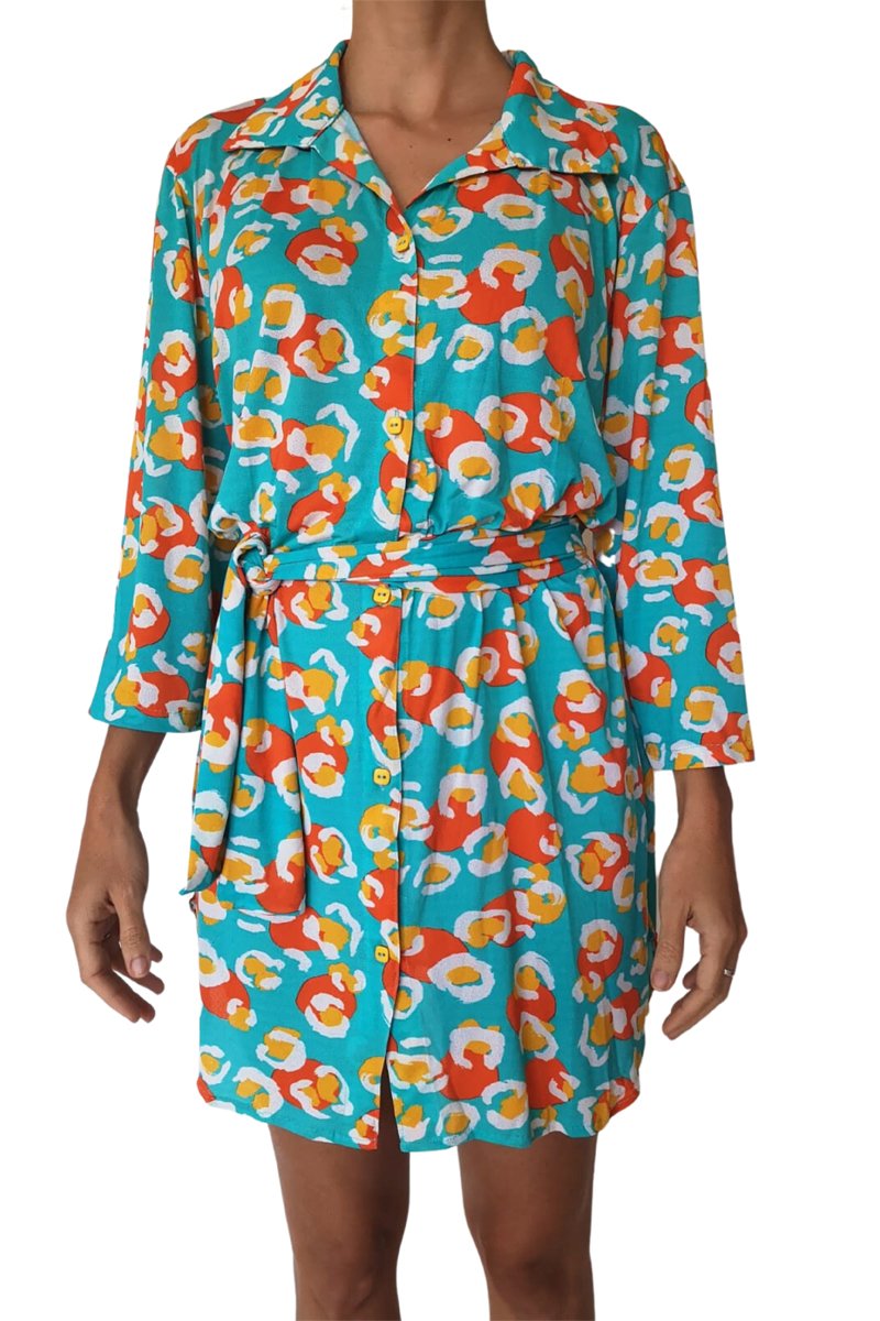 Vestido-camisa Dubai - Azul e laranja