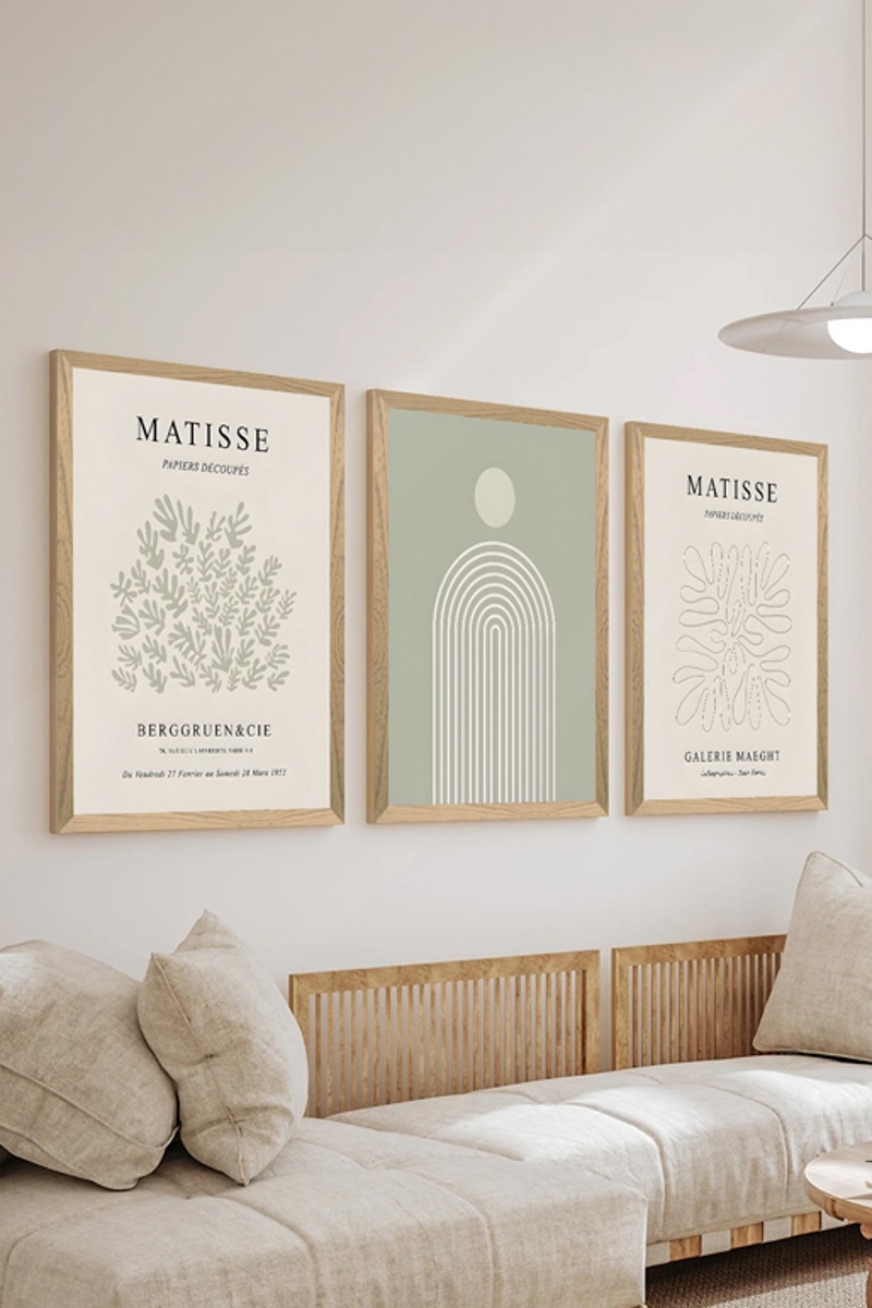 3 quadros. Moldura de madeira maciça.