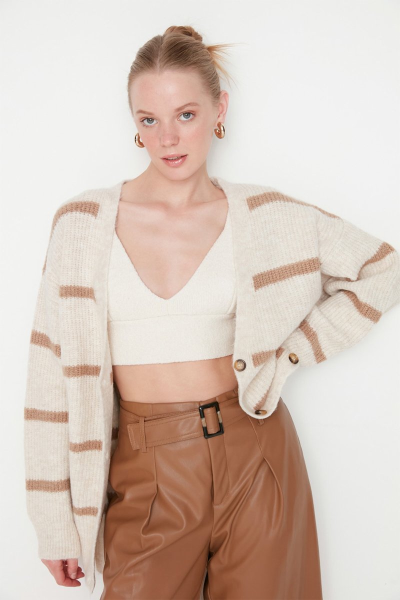 Casaco de malha às riscas - Cru e toupeira