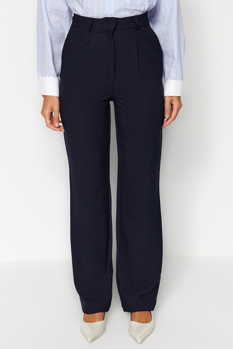 Calças wide legs cintura subida - Azul-marinho