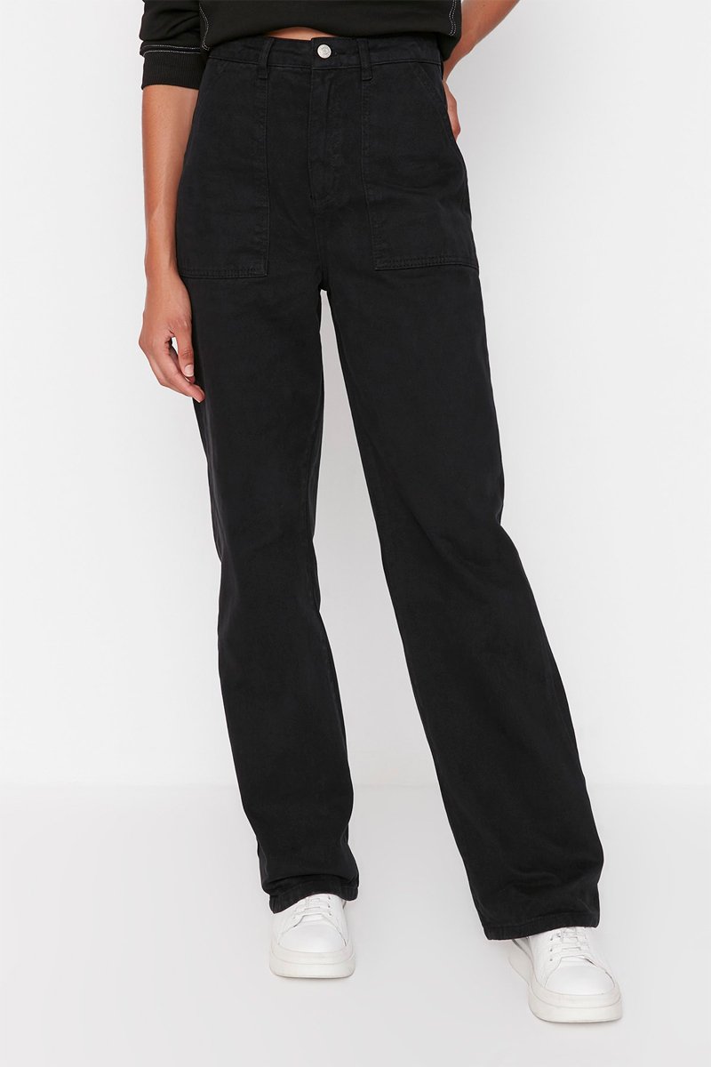 Calças de ganga bootcut de cintura alta - Preto