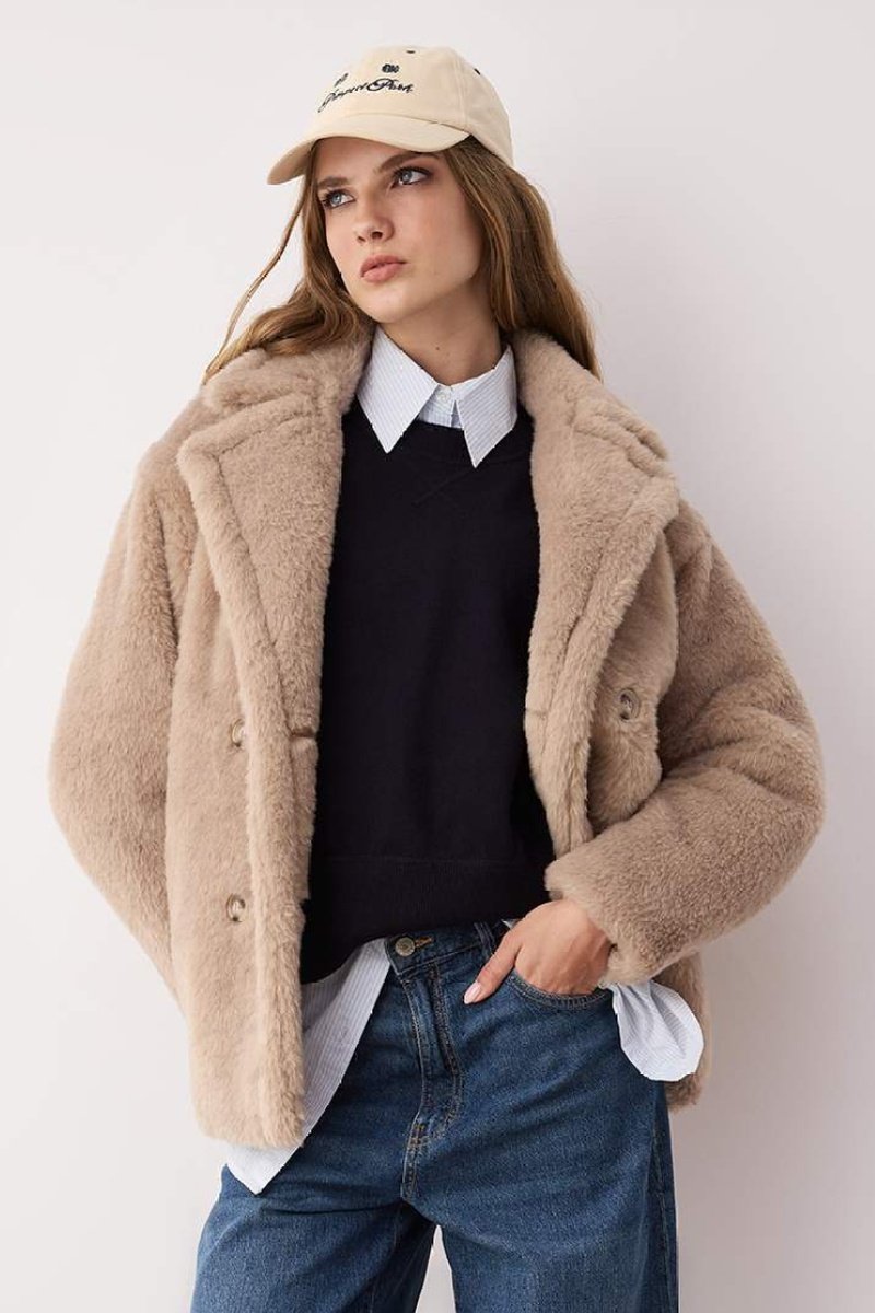Sobretudo em pelo sintético.