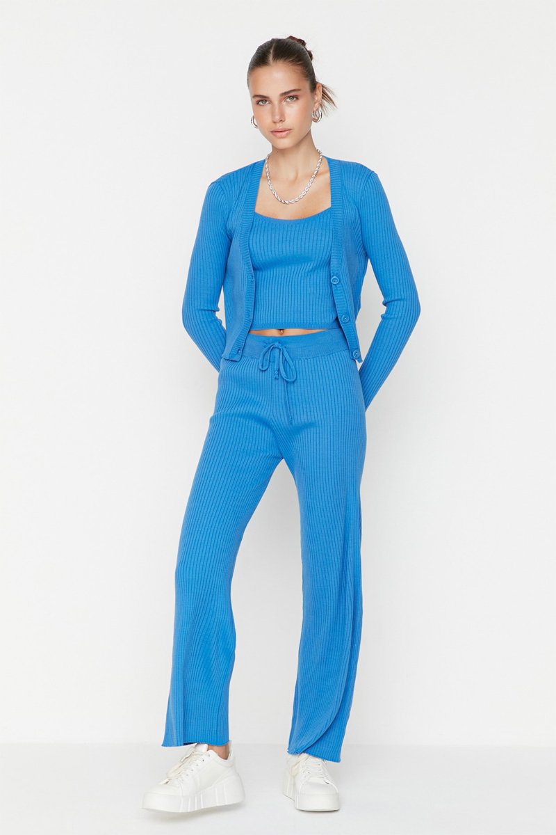 Crop top e calças palazzo - Turquesa