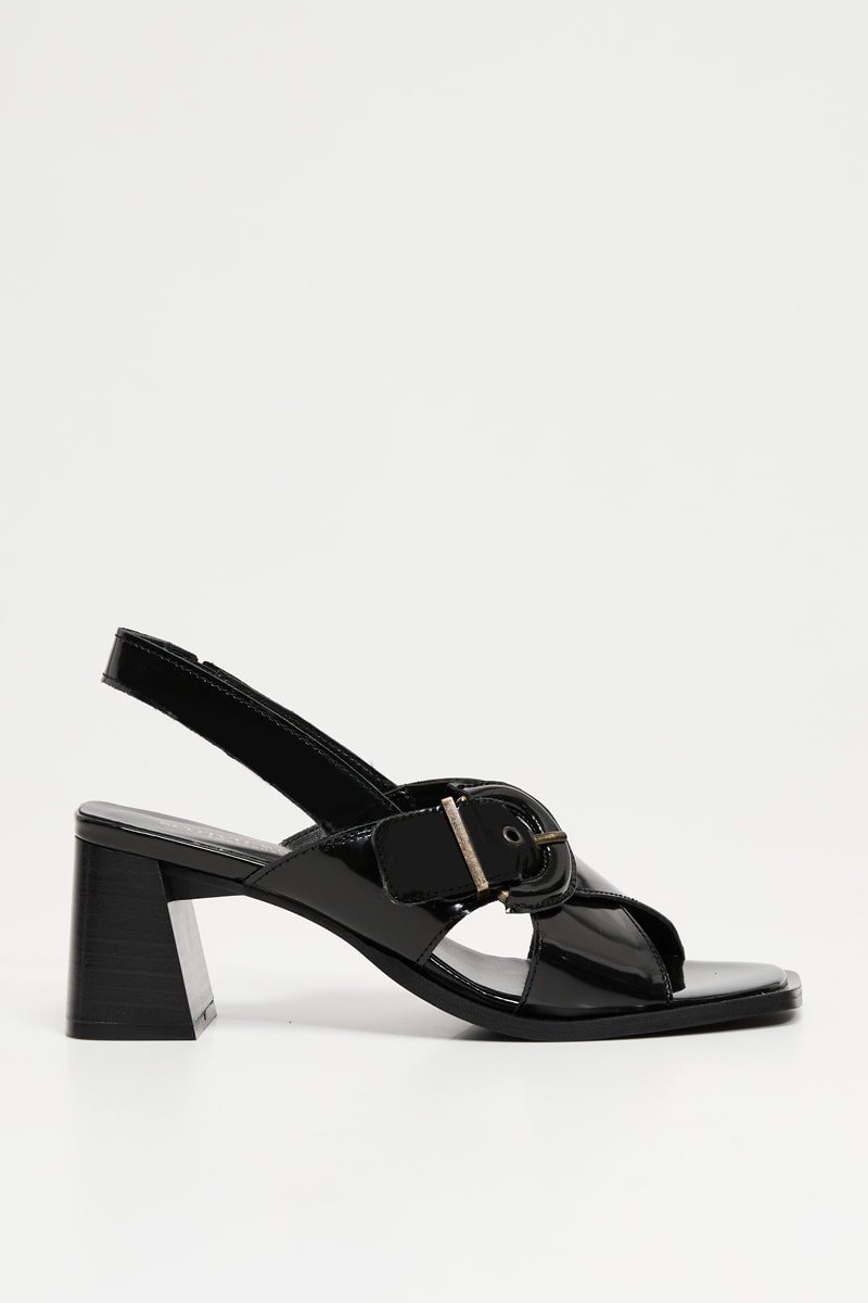 Sandálias de salto envernizadas em couro.