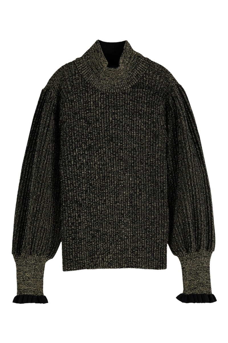 Camisola de mangas compridas volumosas.