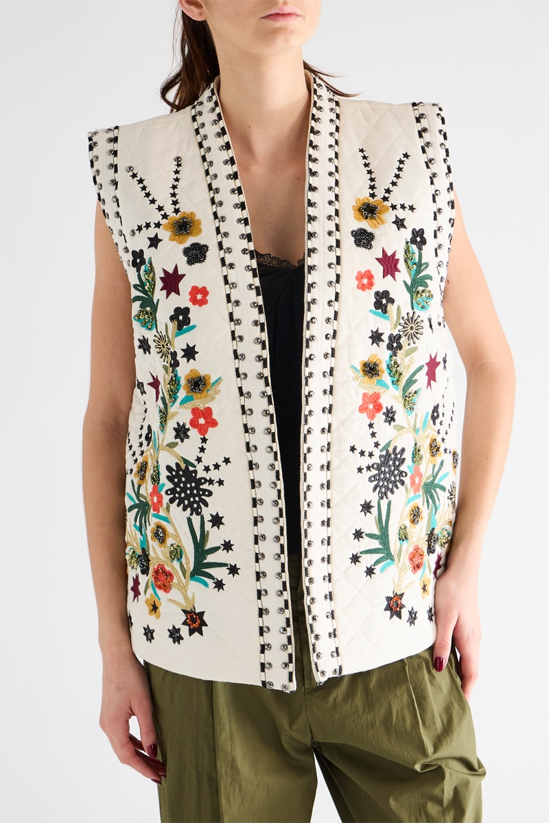 Casaco em linho misturado sem mangas.