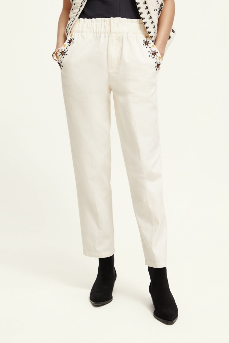 Calças em algodão biológico cintura subida - Bege