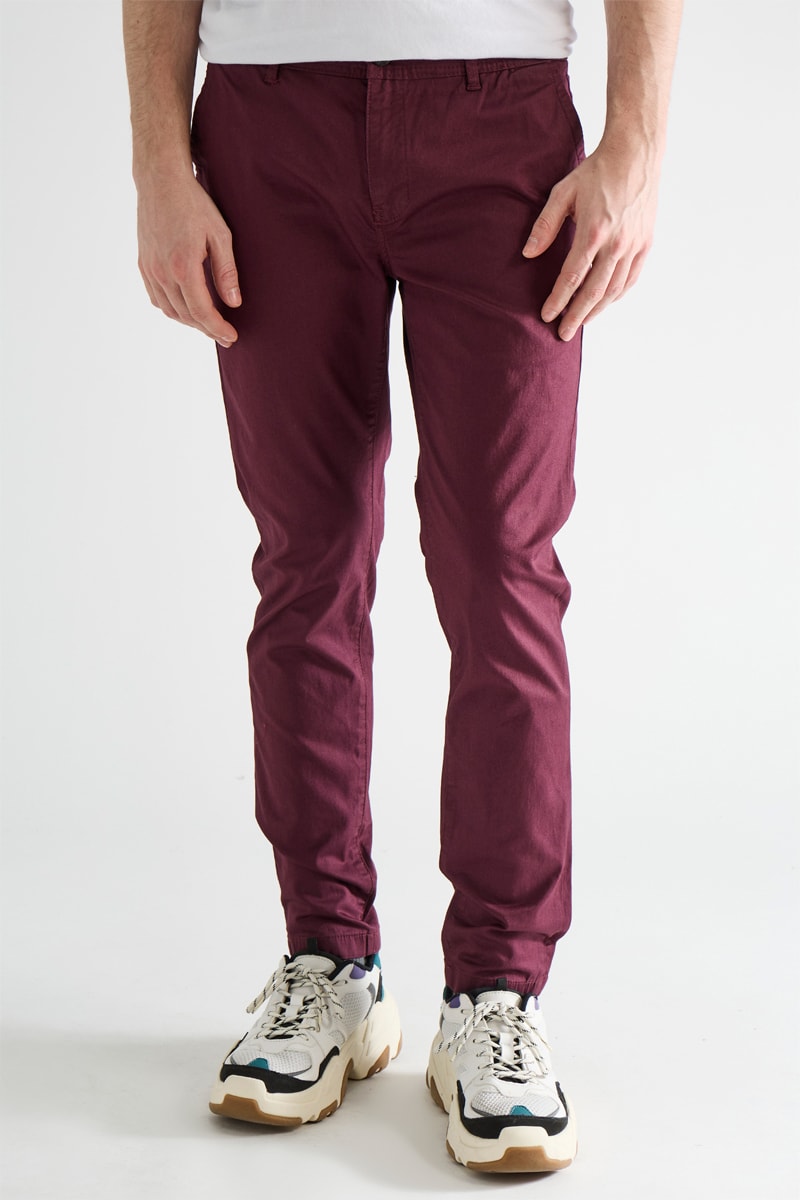 Calças chino em algodão biológico - Bordô