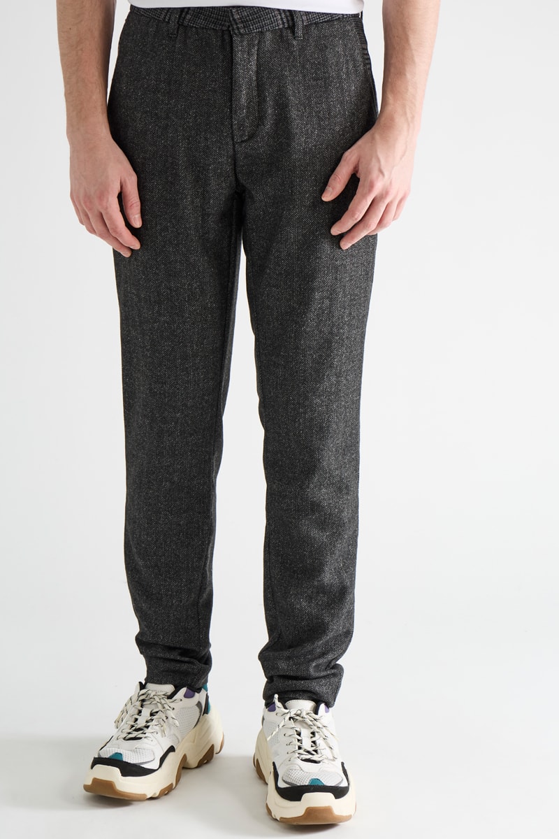 Calças em misturada.