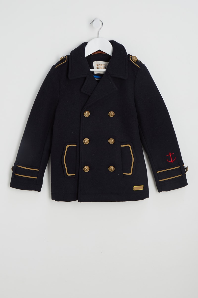 Casaco de marinheiro em lã merino misturada de mangas compridas.