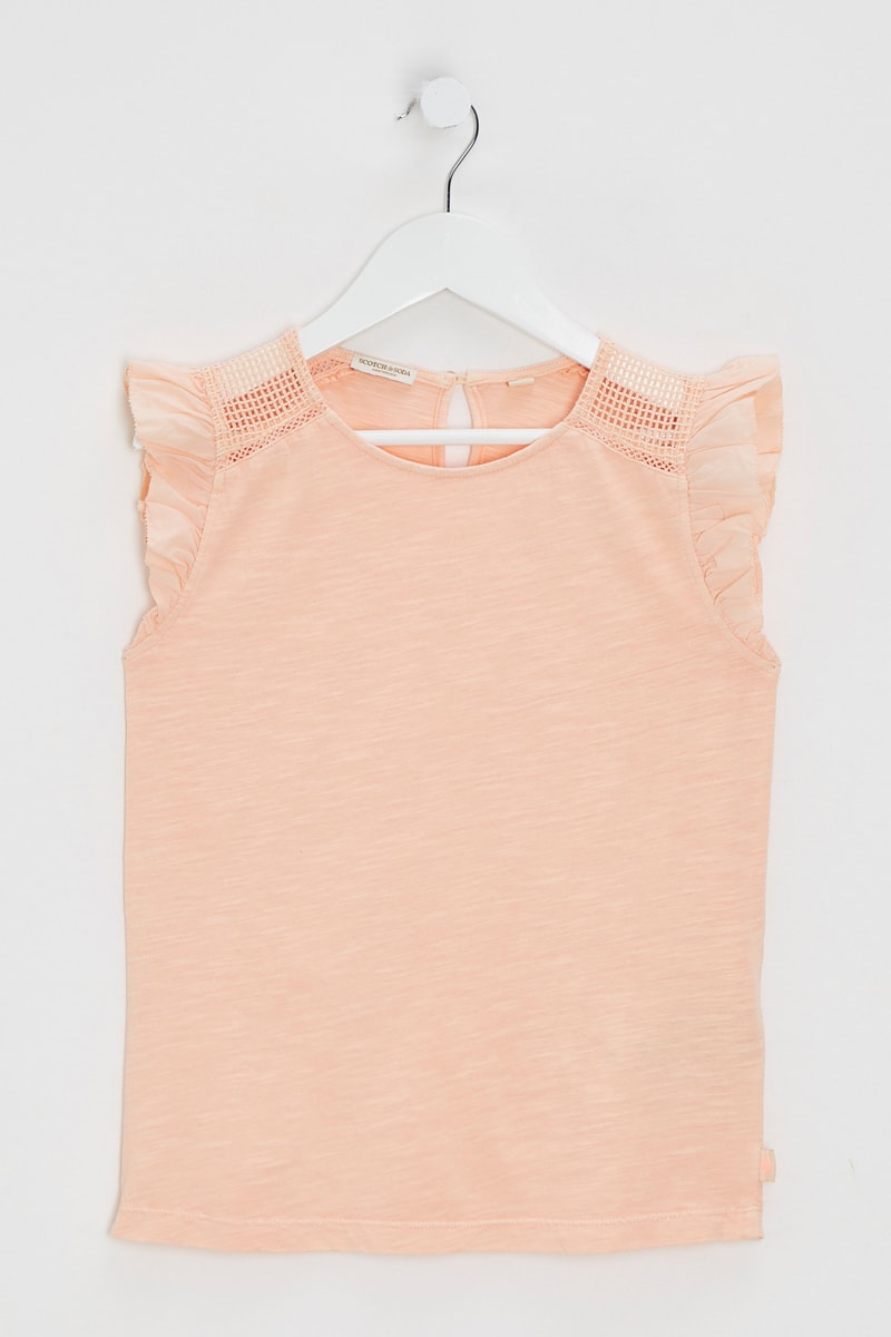 Camisola de alças de mangas curtas com folhos.