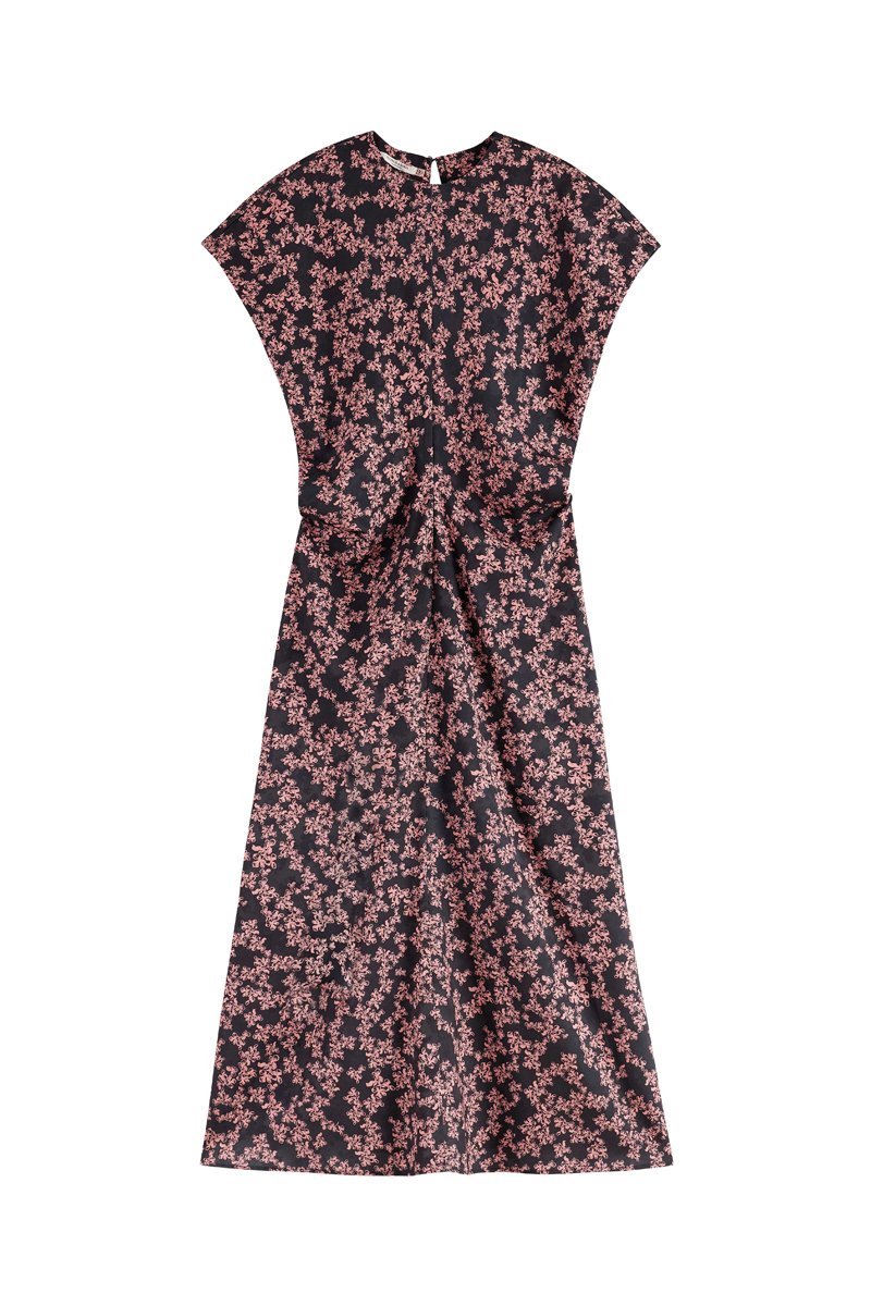 Vestido midi de mangas curtas.