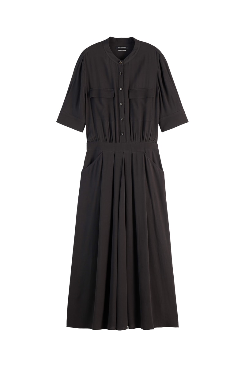 Vestido midi de mangas curtas abotoáveis.