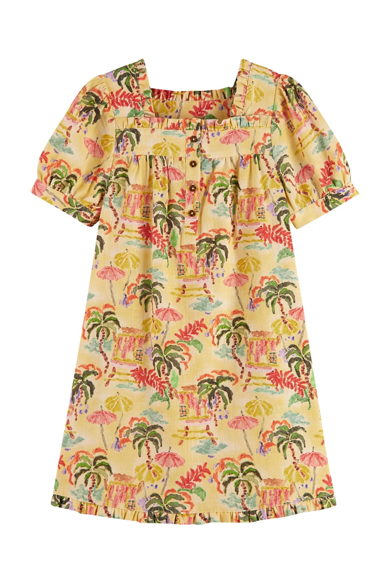 Cor: bege, coral, mostarda e verde-escuro