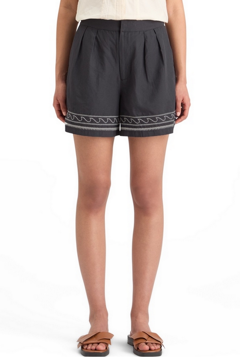 Calções em linho cintura subida - Preto