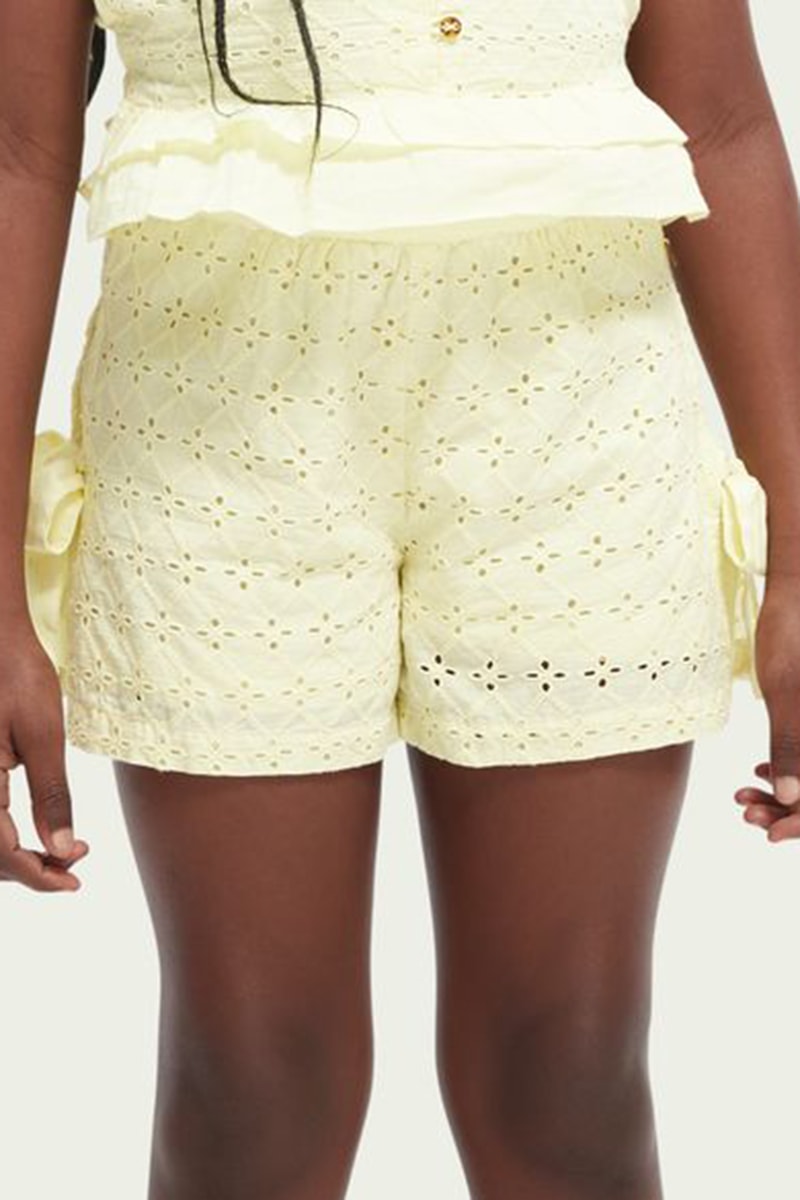 Calções de bordado inglês e algodão biológico.