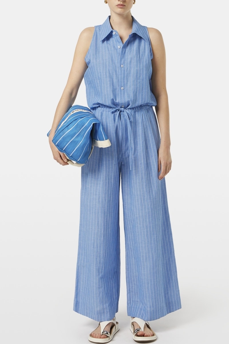 Macacão em linho misturado sem mangas.