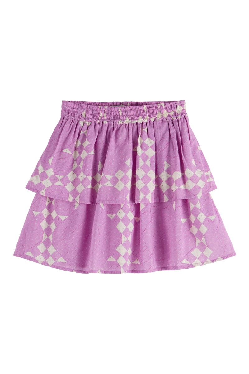 Saia com folhos - Rosa-escuro