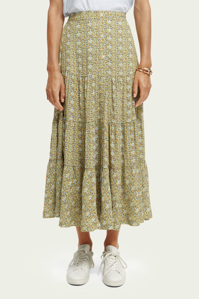 Saia comprida - Mostarda e turquesa