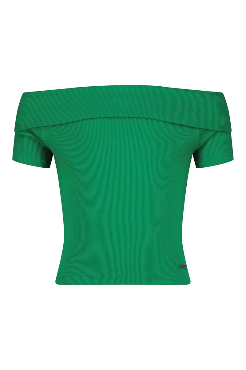 Gola bardot com dobras.