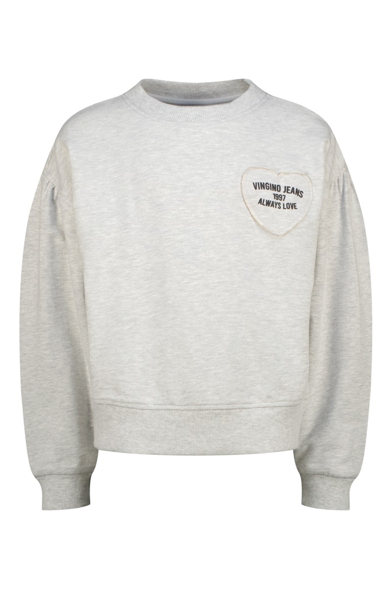 Aplicação com estampado de corações com inscrição e logótipo à frente.