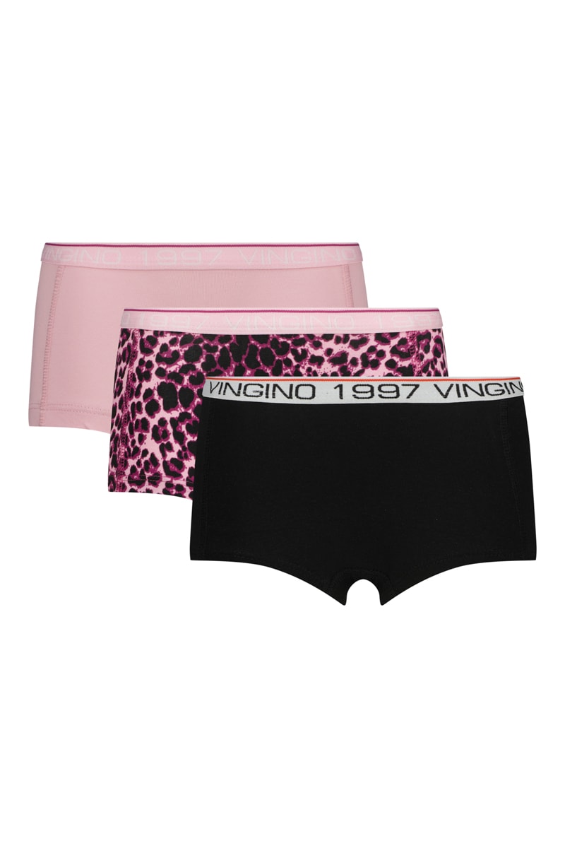 3 shorties 1 com estampado leopardo e 1 com números e logótipo na cintura.