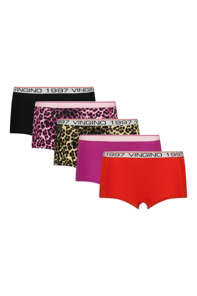 5 shorties 2 das quais com números e logótipo na cintura, 1 com estampado leopardo e com números e logótipo na cintura e 1 estampado leopardo.