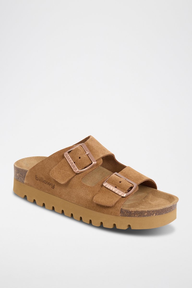 Mules com plataforma em couro - Areia