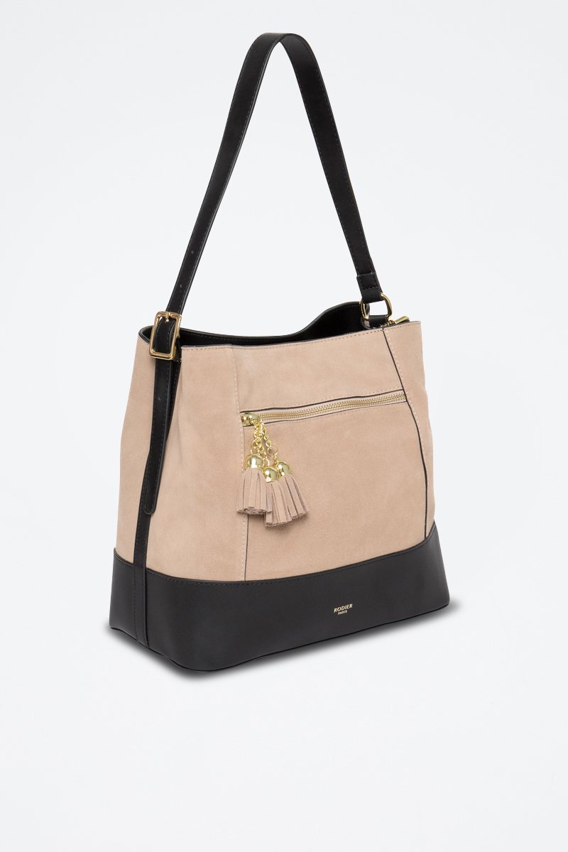 Mala de ombro em couro fendido Cosmo - Bege e preto