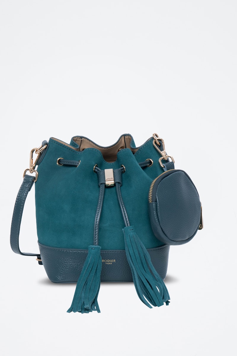Mala bucket de couro fendido Rio - Preto - Azul-pato