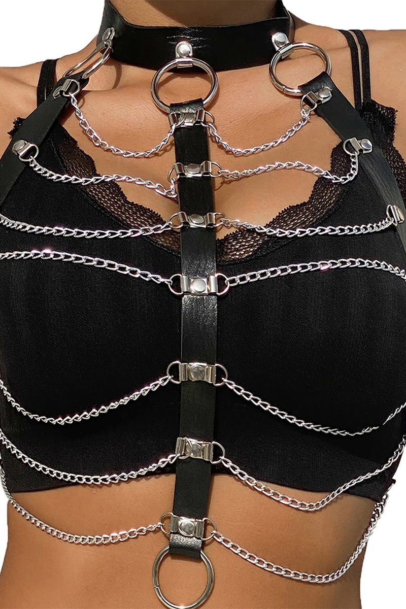Arnês de bondage com correntes - Preto