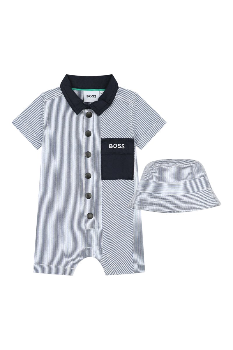 Macacão e chapéu à pescador - Azul e branco - Boss
