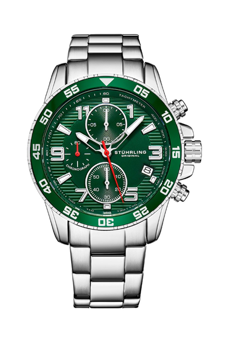 Relógio de quartzo em aço Monaco - Taquímetro e cronógrafo - Prateado e verde