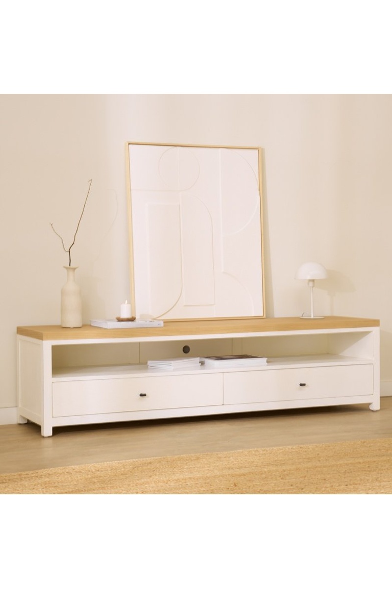 Móvel de TV de 2 gavetas em madeira de sungkai - 180 x 47,5 x 44 cm