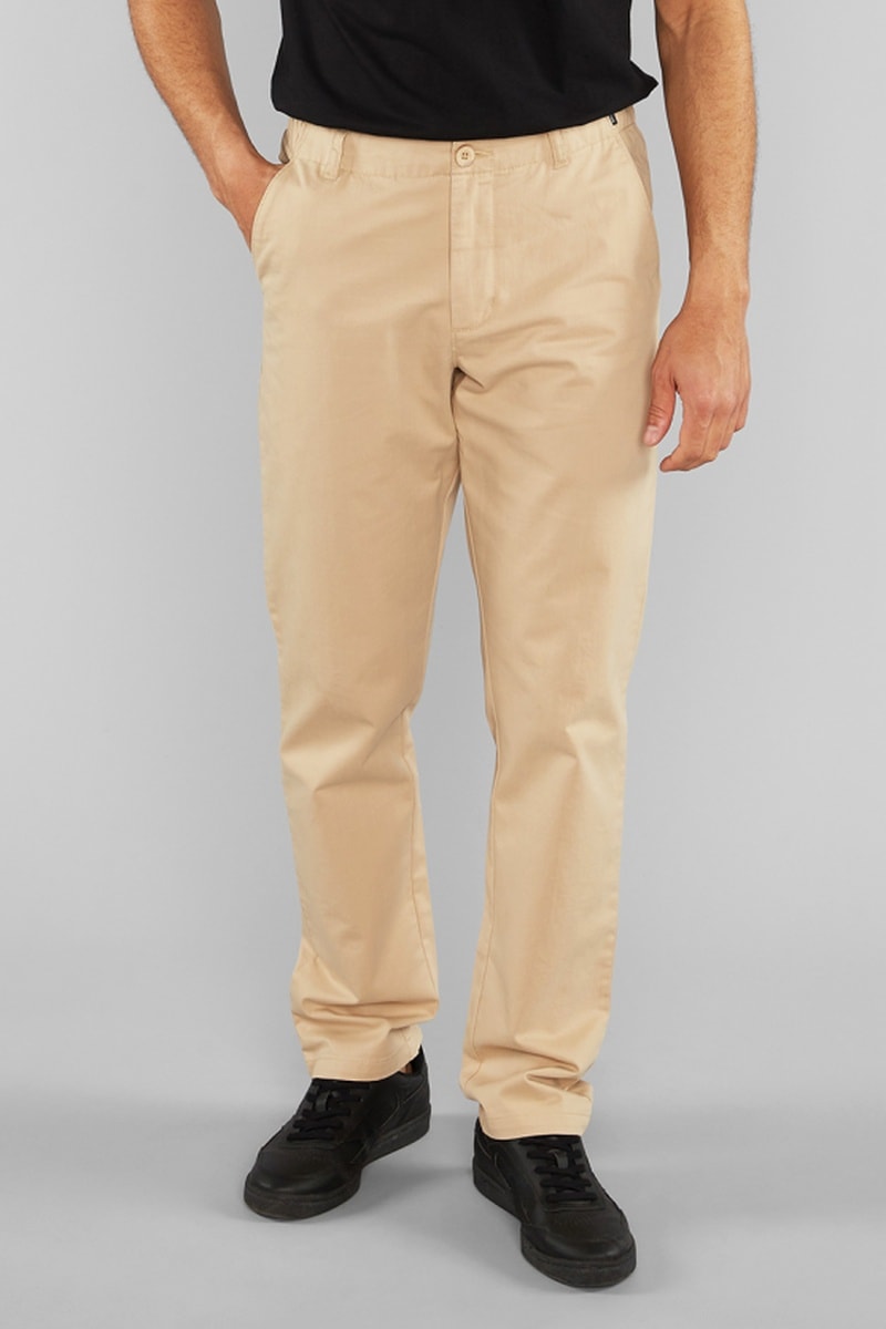 Calças chino em algodão biológico misturado.