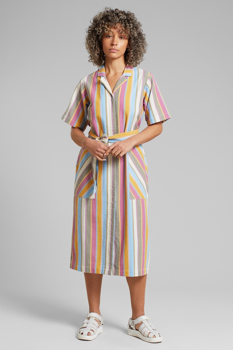 Vestido-camisa regular em algodão biológico - Multicor