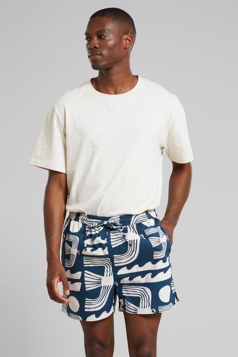 Calções loose em algodão biológico - Azul-pato