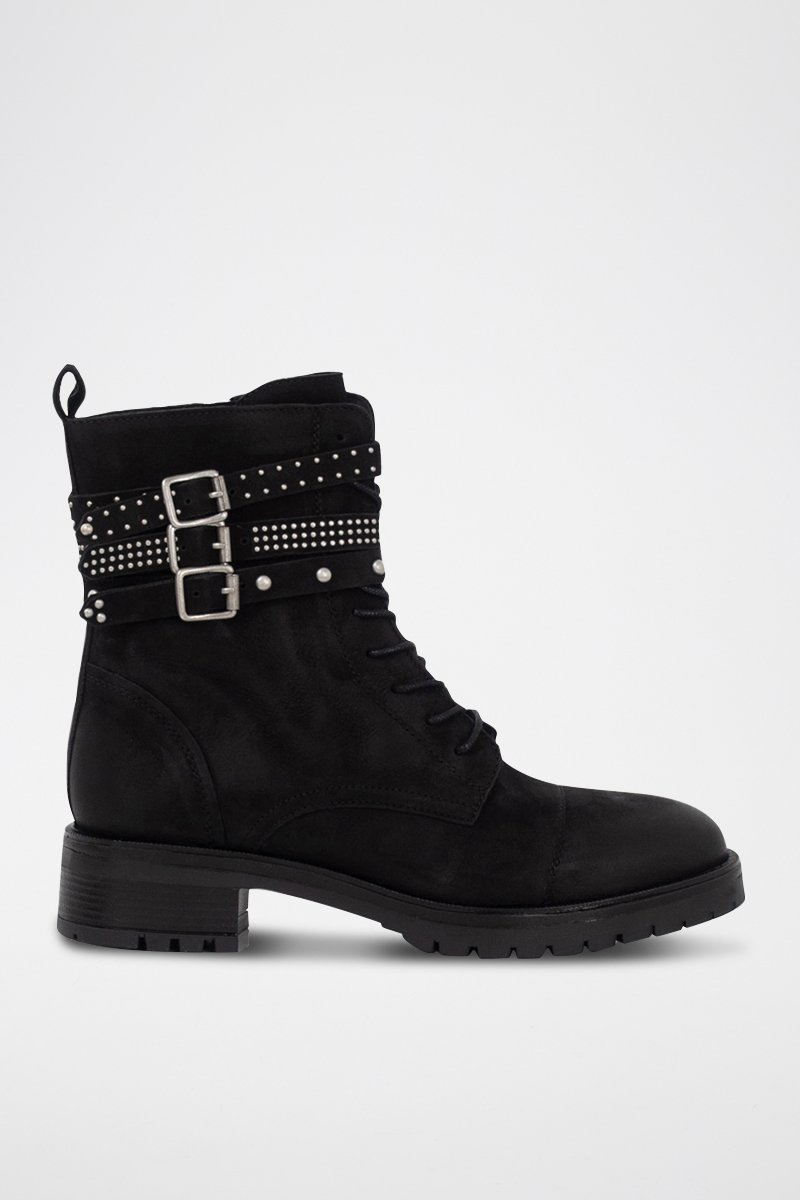 Fivelas e tachas de lado.