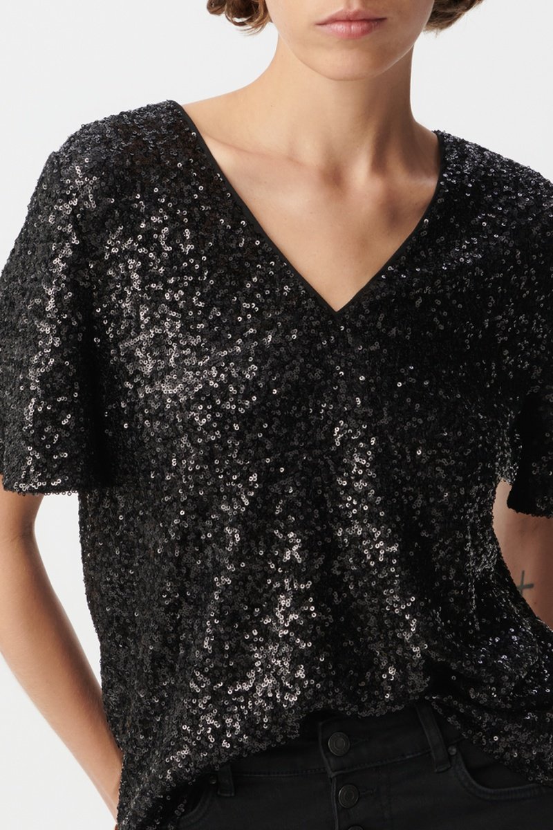 Top com lantejoulas - Preto
