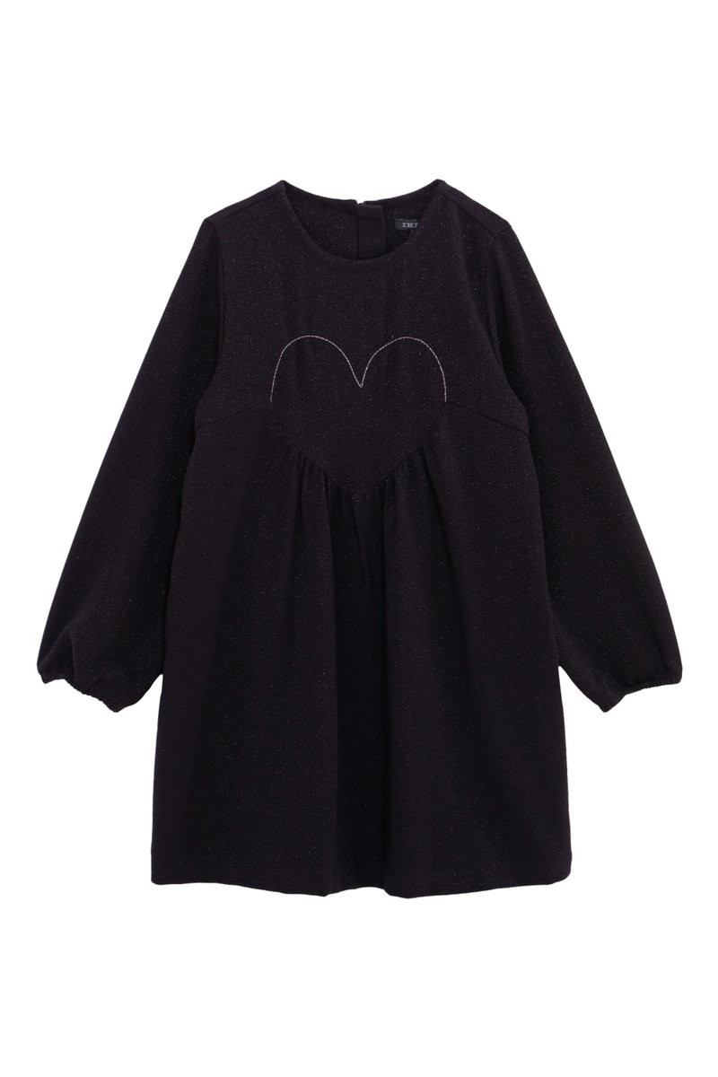Vestido com purpurinas de mangas compridas elásticas.