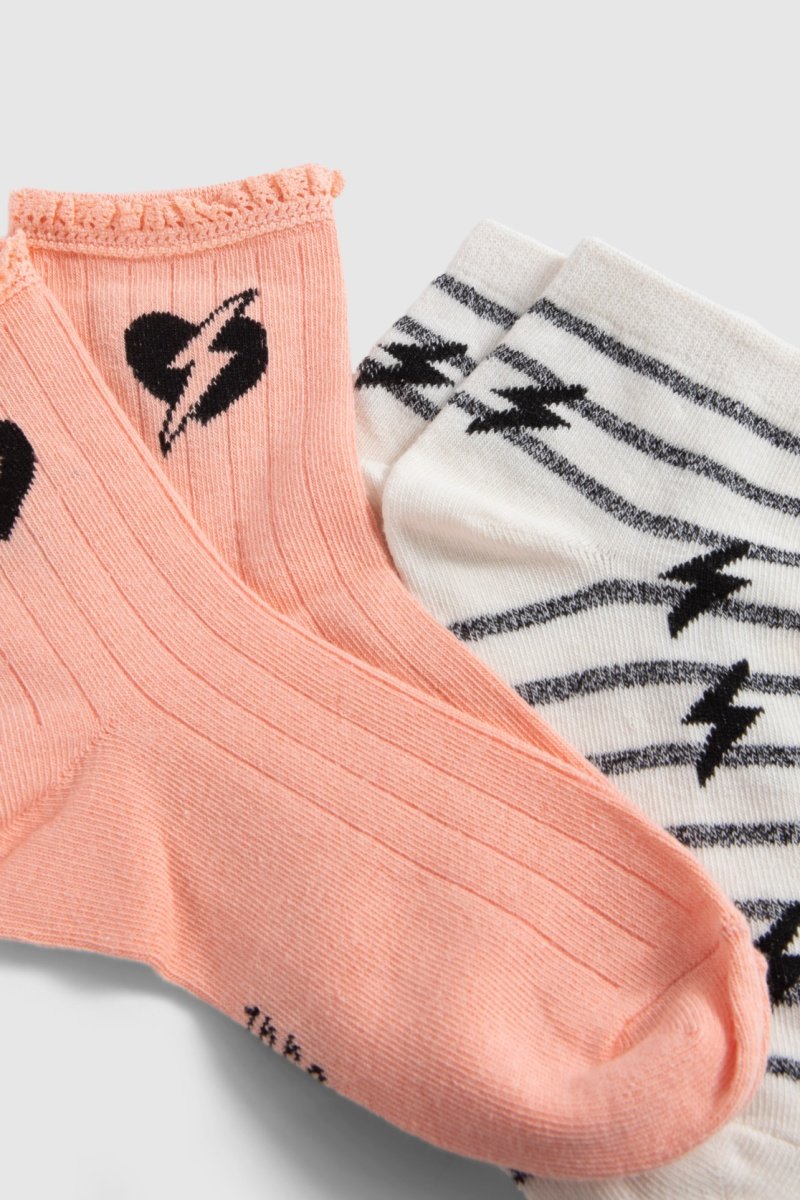 2 pares de meias em algodão biológico - Salmão - IKKS Junior