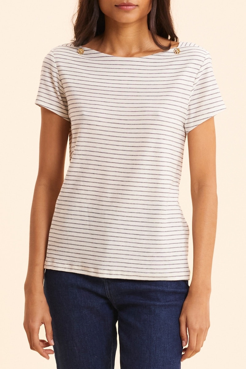 Estampado às riscas.
